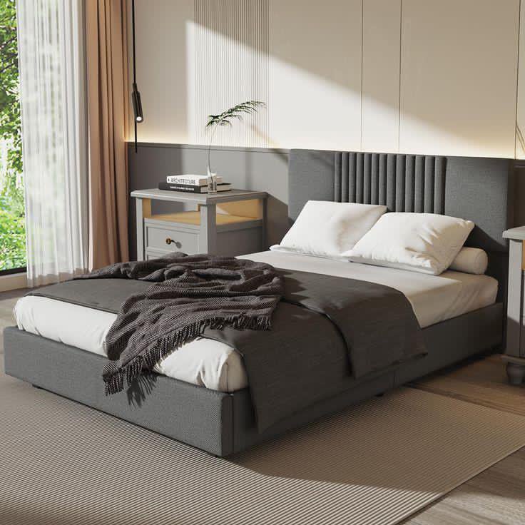 الوصف: سرير مودي وان كتان رصاصي بتصميم بسيط وعملي، يناسب الاستخدام اليومي ويضبط مع أغلب ديكورات البيت.