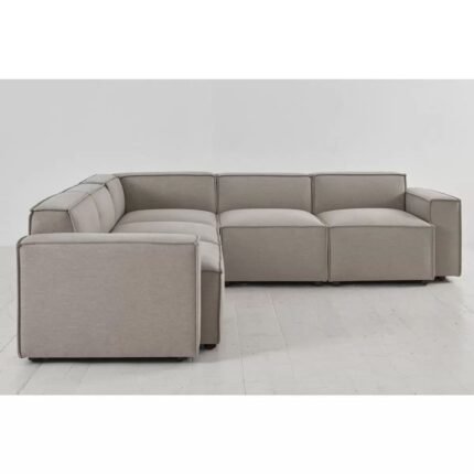 Description: The Rawan corner sofa in beige velvet features a simple and practical design, suitable for everyday use and complementing most home décor styles. Features: Elegant velvet fabric. Specifications: Materials: Wood + Fabric + Velvet – Color: Beige – Length: 320 cm – Width: 310 cm – Depth: 90 cm. Care: Gently clean with a soft cloth and avoid harsh chemicals.