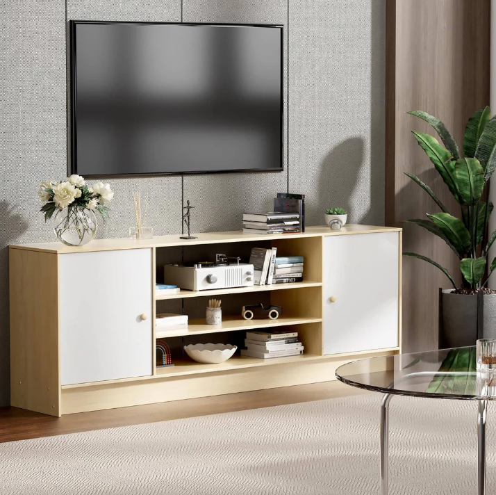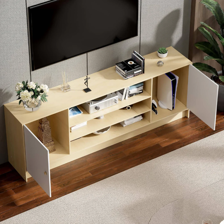 Description: The Elite wooden TV stand features a simple and practical design, suitable for everyday use and complementing most home décor styles. Specifications: – Materials: Wood + Fabric – Color: Wood – Width: 160 cm – Depth: 40 cm – Height: 55 cm Care: Gently clean with a soft cloth and avoid harsh chemicals.