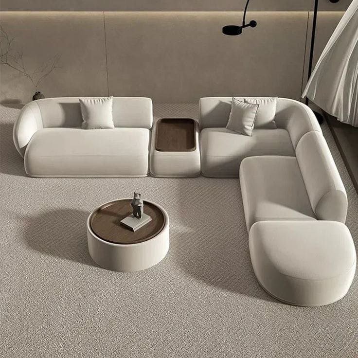Description: This L-shaped sofa is feminine, with a simple and practical design, suitable for everyday use and complementing most home décor styles. Features: – High-density foam for comfortable seating. – Elegant velvet fabric. Specifications: – Materials: Wood + Foam + Fabric + Velvet – Color: Beige – Length: 350 cm – Width: 310 cm – Depth: 90 cm Care: Gently clean with a soft cloth and avoid harsh chemicals.