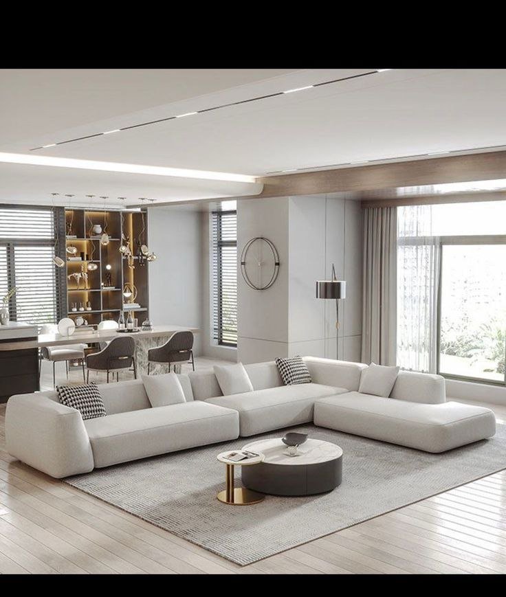 Description: A stylish L-shaped sofa with a simple and practical design, suitable for everyday use and complementing most home décor styles. Features: – High-density foam for comfortable seating. Specifications: – Materials: Wood + Foam + Fabric + Chenille – Color: Beige – Length: 440 cm – Width: 280 cm – Depth: 90 cm. Care: Gently clean with a soft cloth and avoid harsh chemicals.