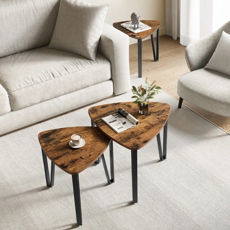 Description: A set of two nesting wooden coffee tables with a simple and practical design, suitable for everyday use and complementing most home décor styles. Specifications: – Materials: Wood + Steel + Fabric – Color: Black Care: Wipe clean with a damp cloth only.
