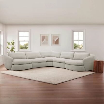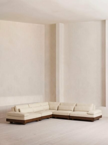 Description: A luxurious corner sofa with a simple and practical design, suitable for everyday use and complementing most home décor styles. Features: – High-density foam for comfortable seating. – Practical linen fabric. Specifications: – Materials: Wood + Foam + Fabric + Linen – Color: Beige – Length: 300 cm – Width: 300 cm – Depth: 90 cm. Care: Gently clean with a soft cloth and avoid harsh chemicals.