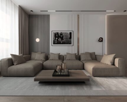 Description: This U-shaped sofa features a simple and practical design, suitable for everyday use and complementing most home décor styles.