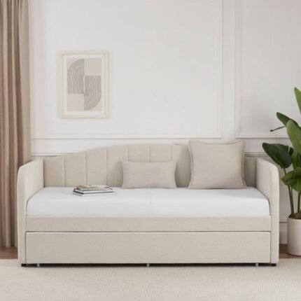 الوصف: سرير بيج كتان راقي بتصميم بسيط وعملي، يناسب الاستخدام اليومي ويضبط مع أغلب ديكورات البيت. المميزات: – قماش كتان