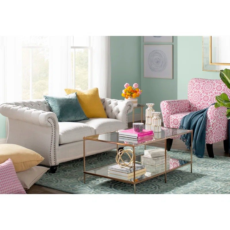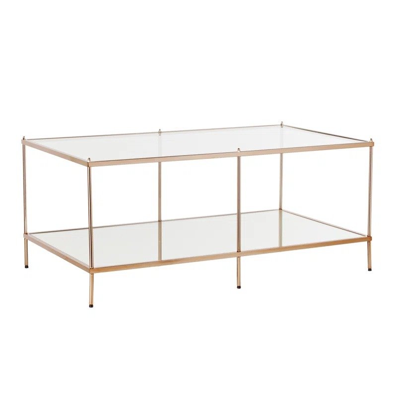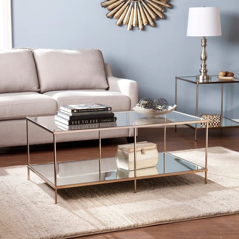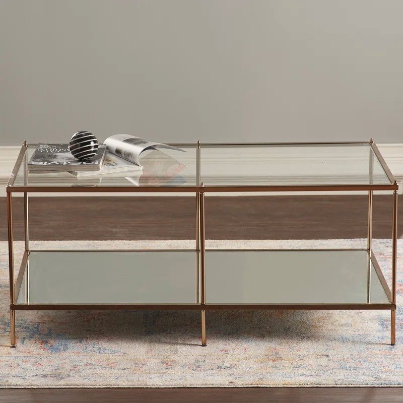 طاولة قهوة زجاجية مستطيلة بتصميم عصري ومرايا سفلية