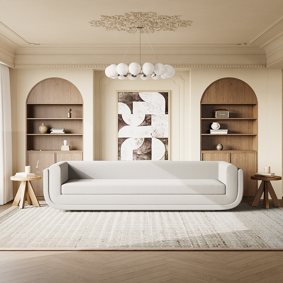 كنبة ثلاث مقاعد أندريه بأزرع منحنية - بيج