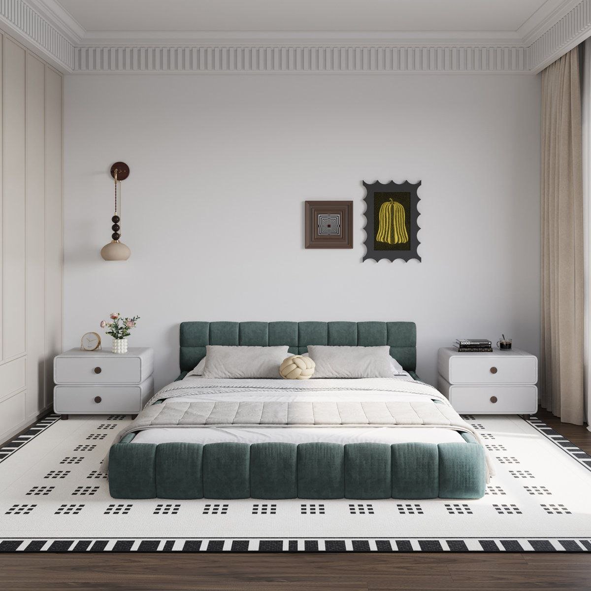– الخامات: خشب + MDF + إسفنج + قماش