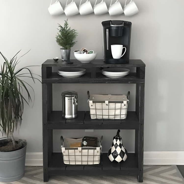 الوصف: ركن قهوة خشب كونتر لون اسود بتصميم بسيط وعملي، يناسب الاستخدام اليومي ويضبط مع أغلب ديكورات البيت.