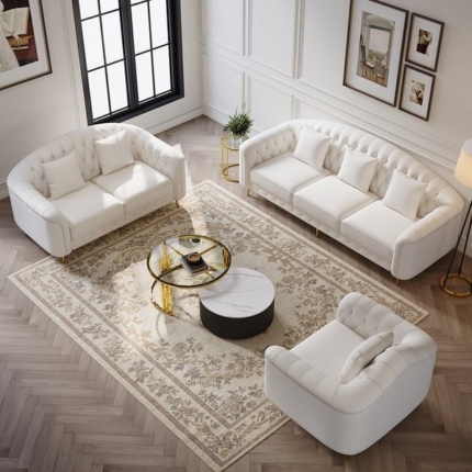 أطقم كنب إيزايا مخمل بيج