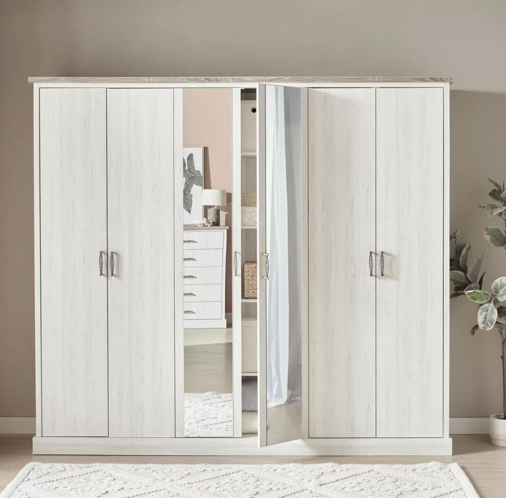 خزانة ملابس فرنش نورديك 6 أبواب - أبيض