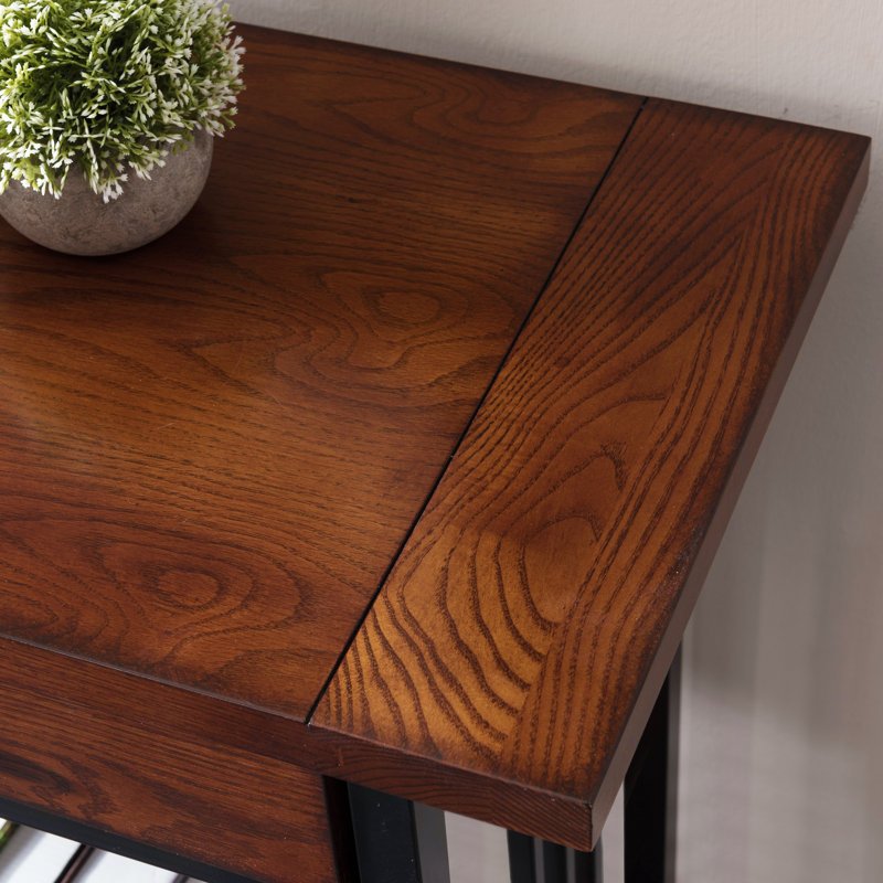 سطح وواجهات من خشب عالي الجودة يتميز بصلابته وعروقه الطبيعية الجذابة، محمول على هيكل حديدي صلب باللون الأسود المطفأ.