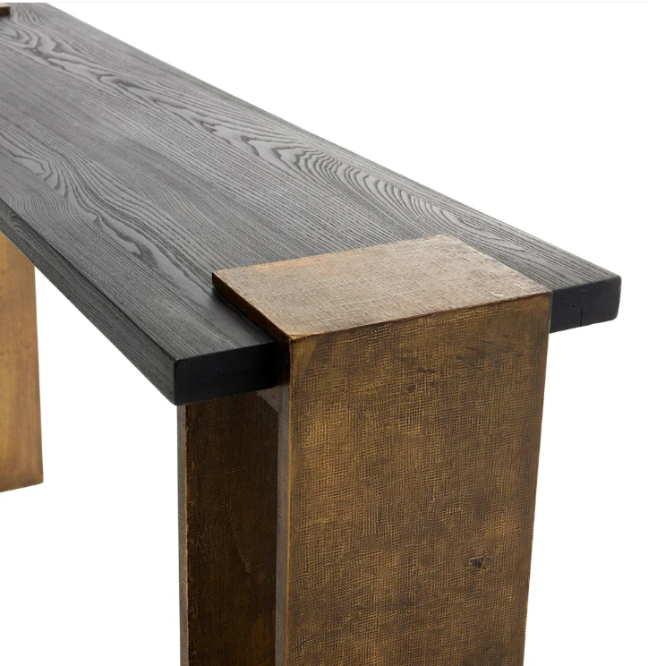 طاولة مدخل مستطيلة معدن اسود و خشب