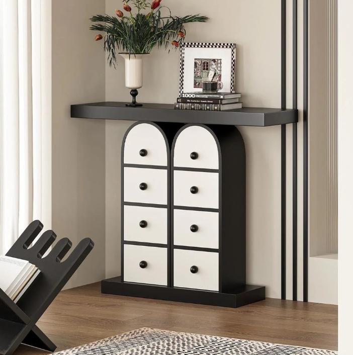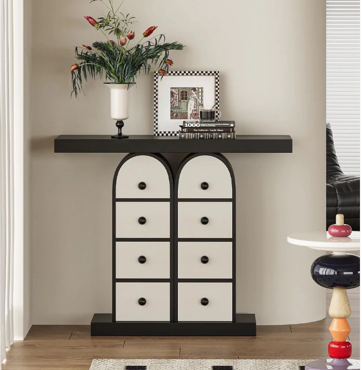 الوصف: كونسول مدخل بمساحات تخزينية بتصميم بسيط وعملي، يناسب الاستخدام اليومي ويضبط مع أغلب ديكورات البيت.