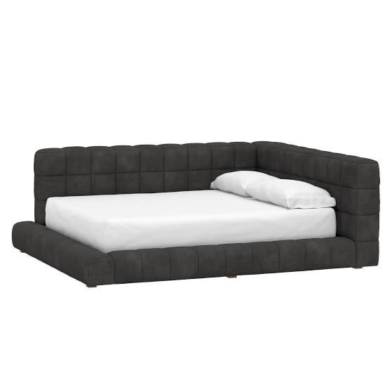 سرير لجين مخمل بيج مع بوف