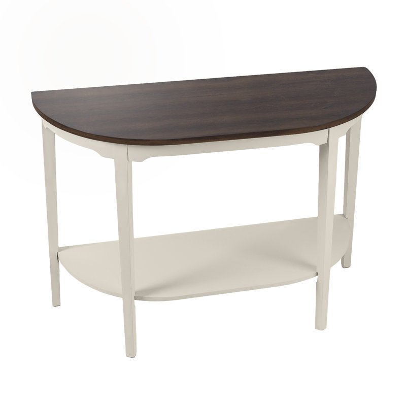 طاولة كونسول نصف قمر خشب طبيعي لونين مع رف تخزين