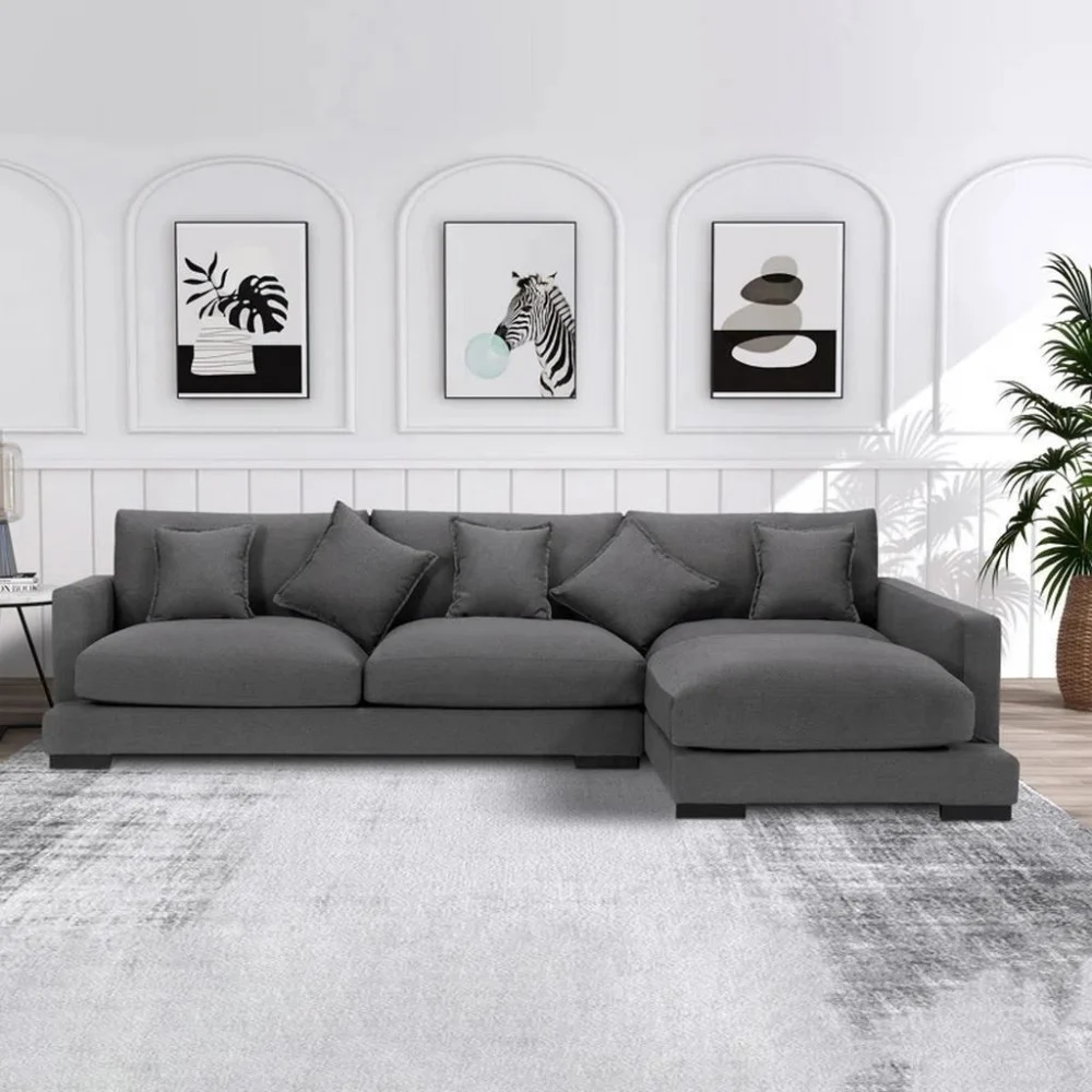 كنبة حرف ال كتان 4 مقاعد منخفض رصاصي