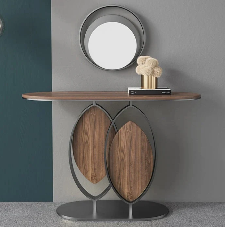 طاولة مدخل مستطيلة معدن اسود و خشب
