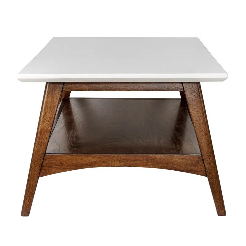 طاولة قهوة خشبية باركر بسطح أبيض لامع ورف مفتوح