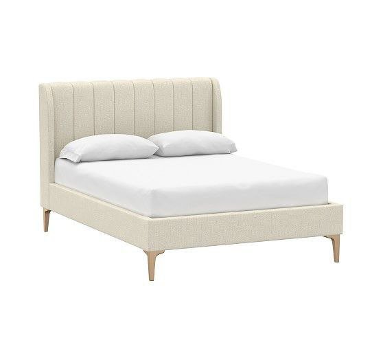 سرير كوين رمادي – كتان