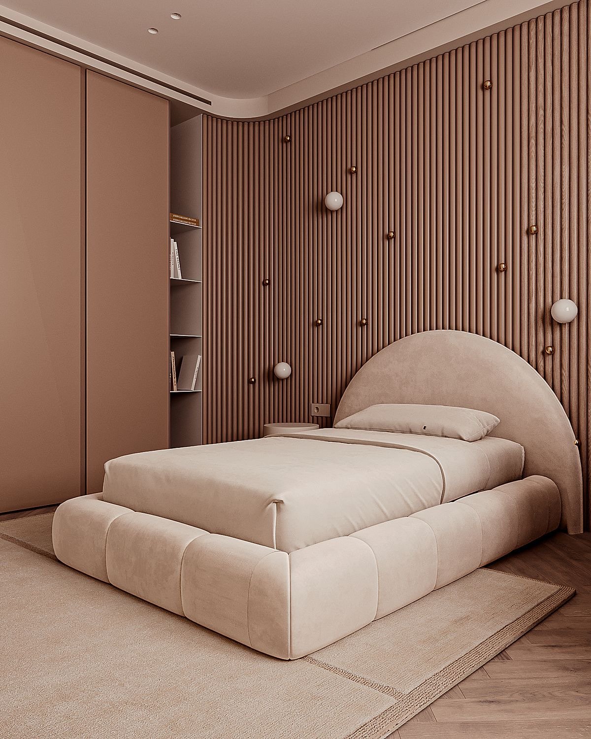 سرير رحاب مخمل بيج