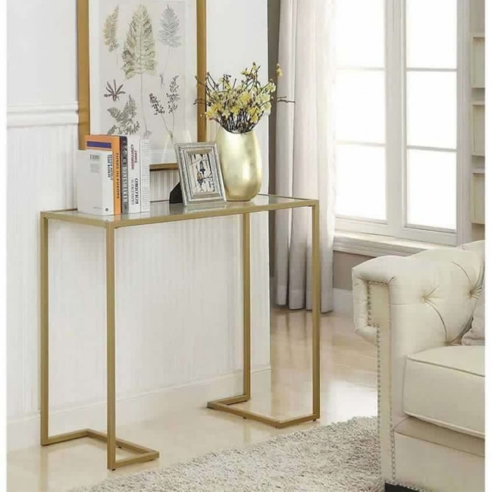الوصف: طاولة مدخل ذهبي لامع بتصميم بسيط وعملي، يناسب الاستخدام اليومي ويضبط مع أغلب ديكورات البيت.