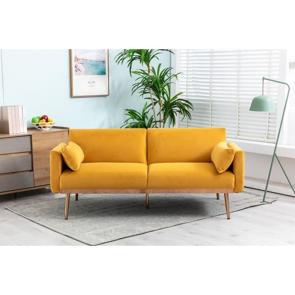 كنبة ثلاث مقاعد مخملية بأقدام معدنية من سمبل هوم – اللون الأصفر
