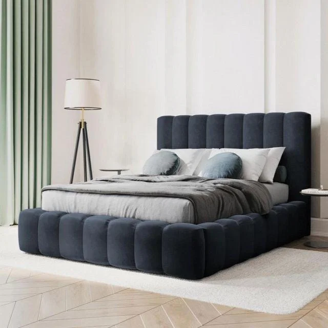 سرير منجد بالمخمل – رمادي