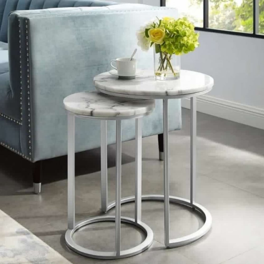 طقم طاولات خدمة بيضاء